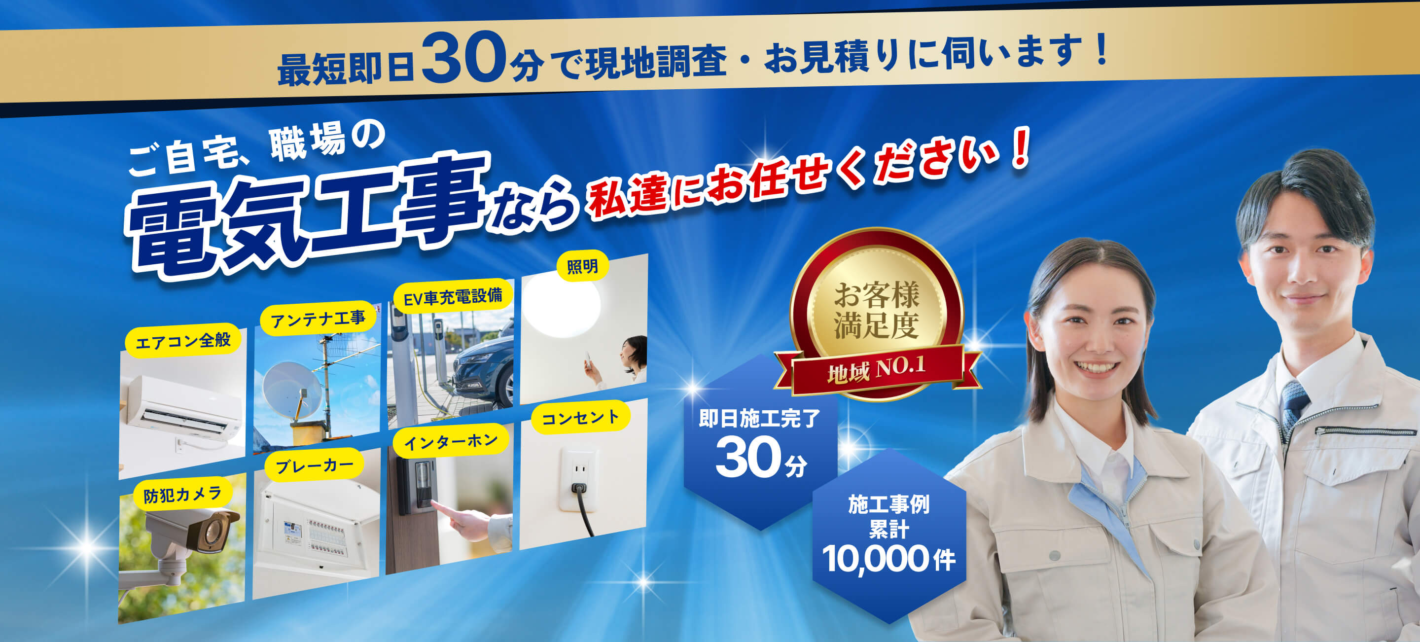 自社スタッフが最初から最後まで責任を持って対応致します。電気修理の品質はもちろんのこと、接客品質も地域NO.1を目指しております。ご自宅の電気修理のことなら、狭山電気工事店にご相談ください。